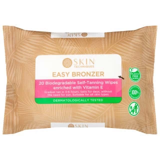 20 biodegradable self tanning wipes enriched with vitamin C.